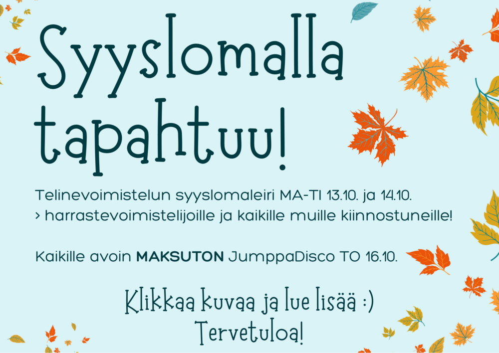 Syyslomalla tapahtuu! Tervetuloa syyslomaleirille ja lasten JumppaDiscoon!