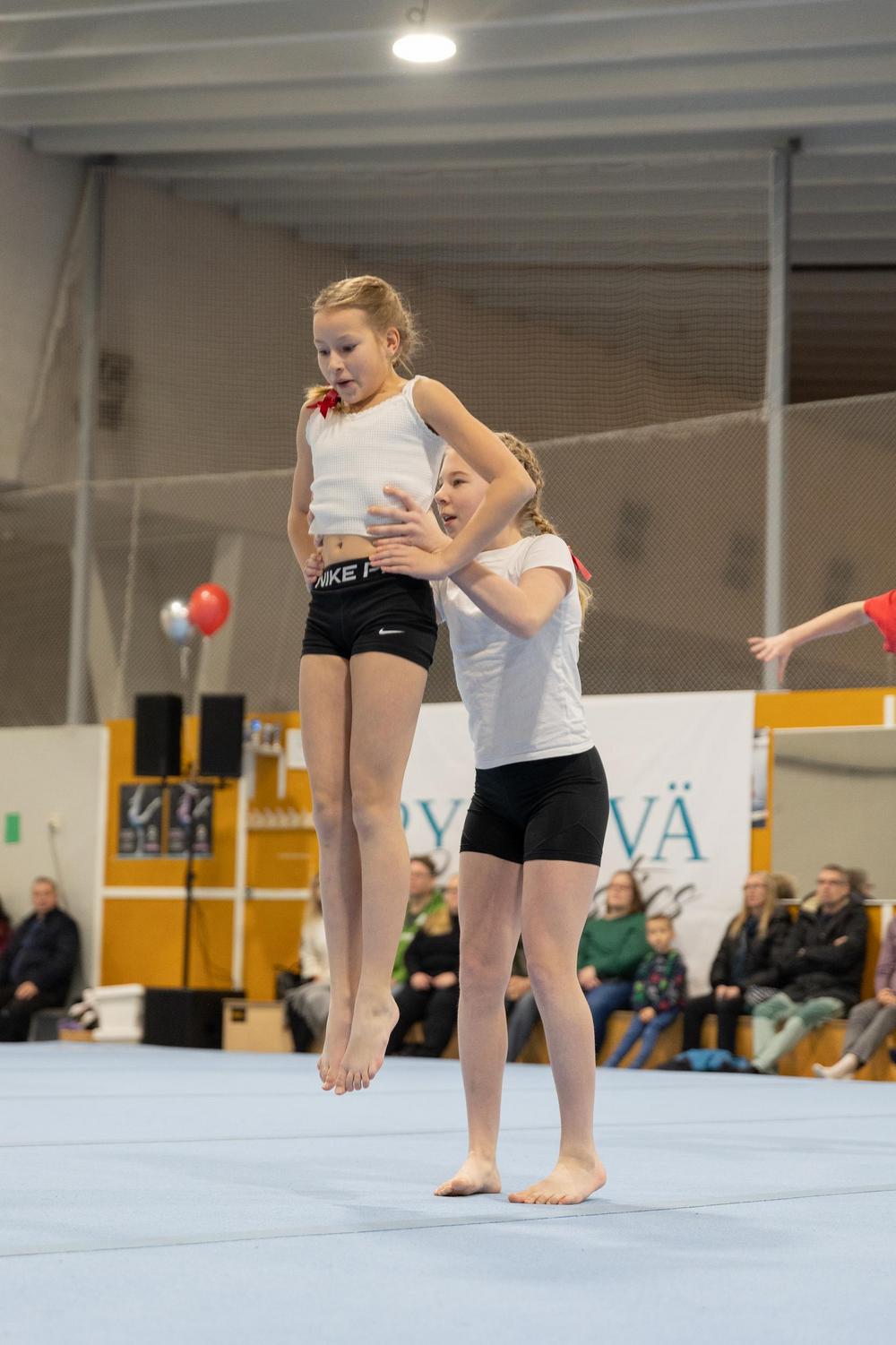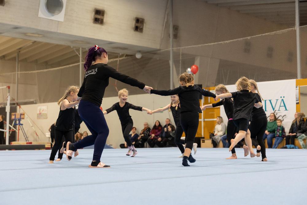 Näytöspäivän aloittivat Turun, Maskun, Paimion ja Ruskon Voimistelukoulu-, harraste- ja merkkiryhmät omilla upeilla esityksillään. Toisessa näytöksessä estradille nousivat seuran esikilpa-, harrastekilpa-, kilpa- ja maajoukkeryhmät. Näytösten yhteydessä palkittiin myös kauden aikana menestyneitä voimistelijota, valmentajia ja vapaaehtoisia, katso kaikki palkitut tästä.