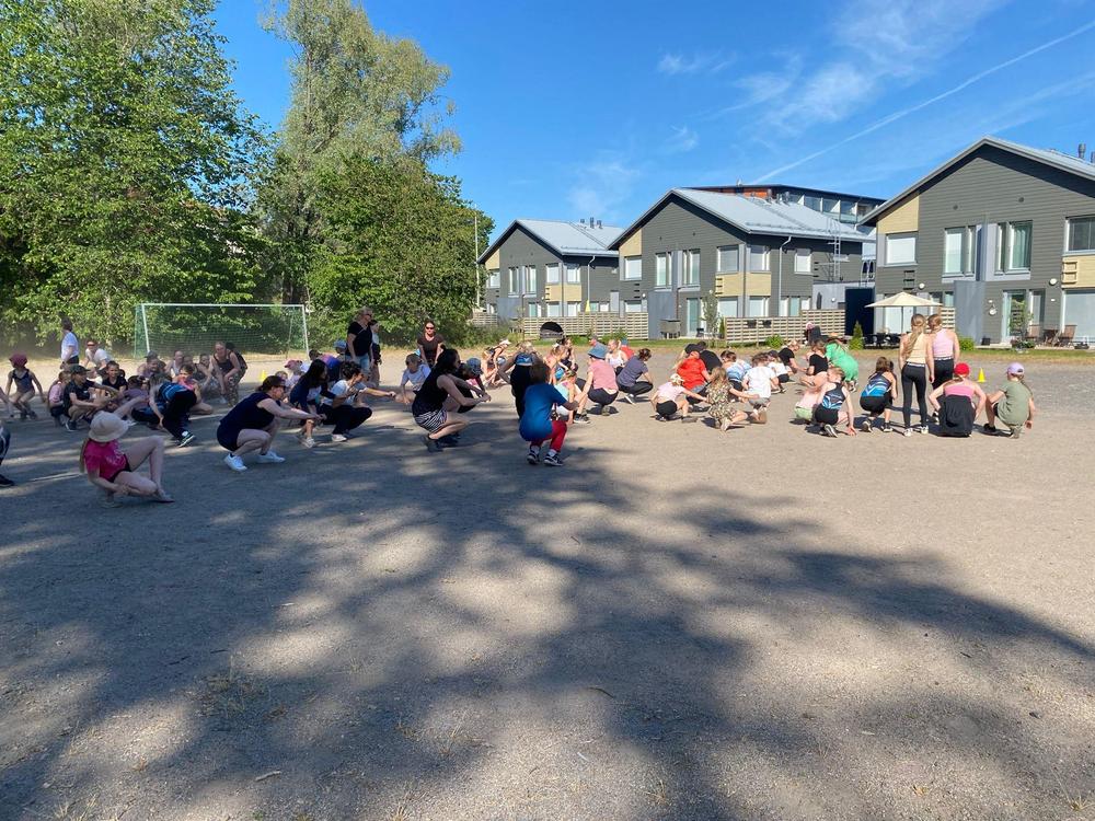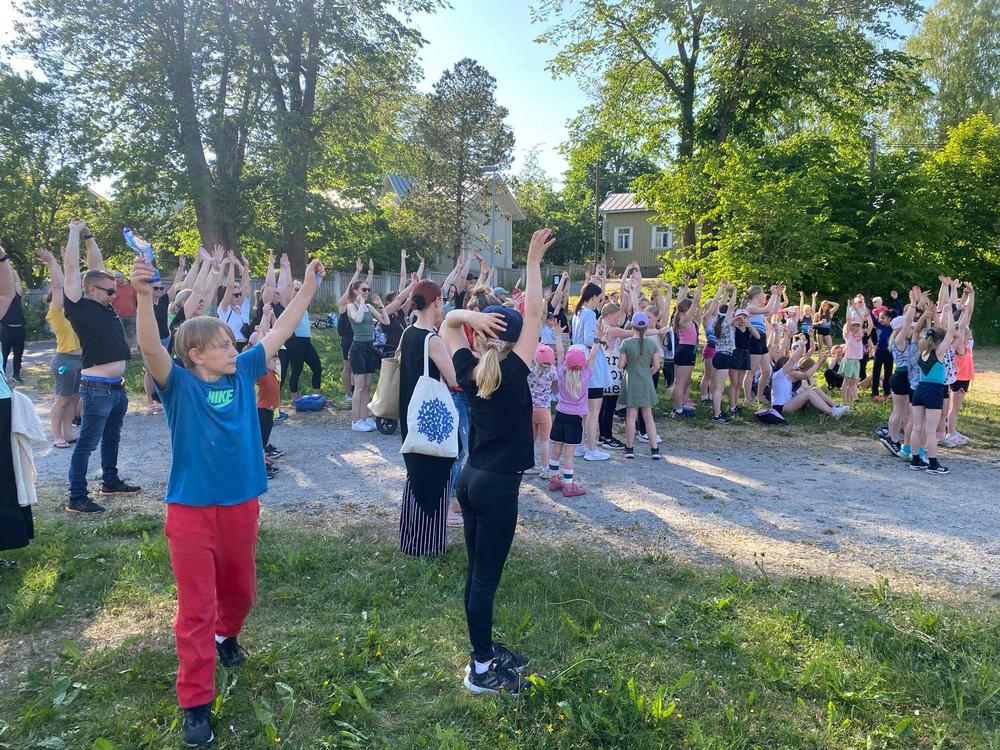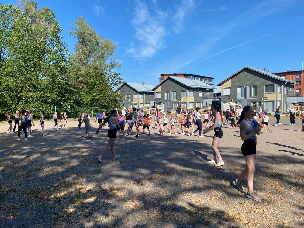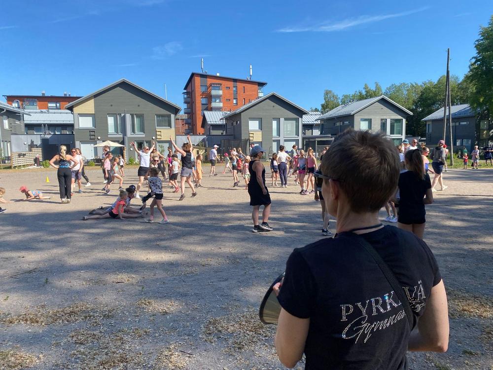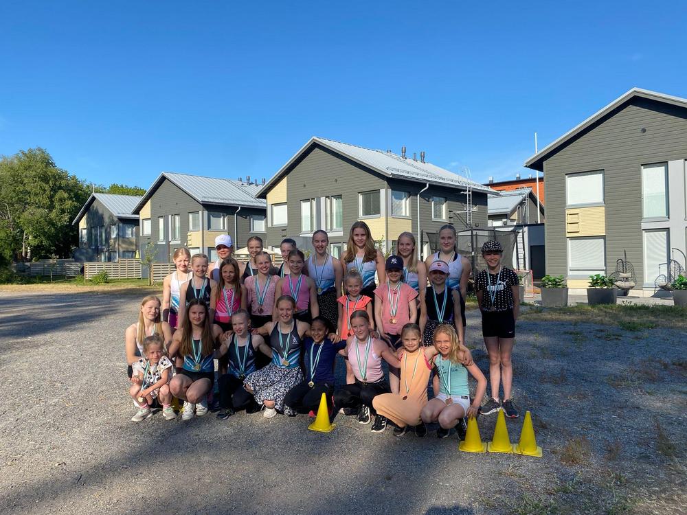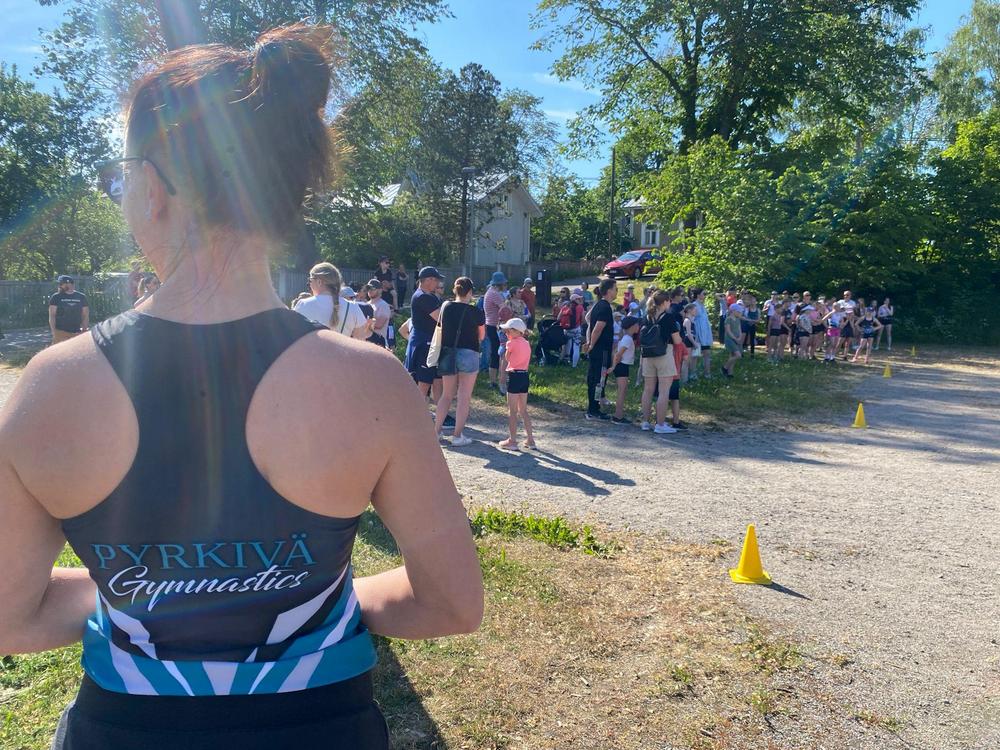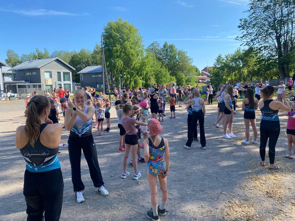 Kaikki kilpatoiminnassa mukana olevat voimistelijat perheineen kokoontuivat yhteiseen kevätkauden päätöstapahtumaan 13.6.2023. Tilaisuudessa mm. vaihdettiin kuulumisia voimistelijoiden, perheiden ja valmentajien kesken, liikuttiin isolla porukalla, syötiin jätskiä ja shoppailtiin jumppapukukirppiksellä. Kiitos kaikille mukana olleille!