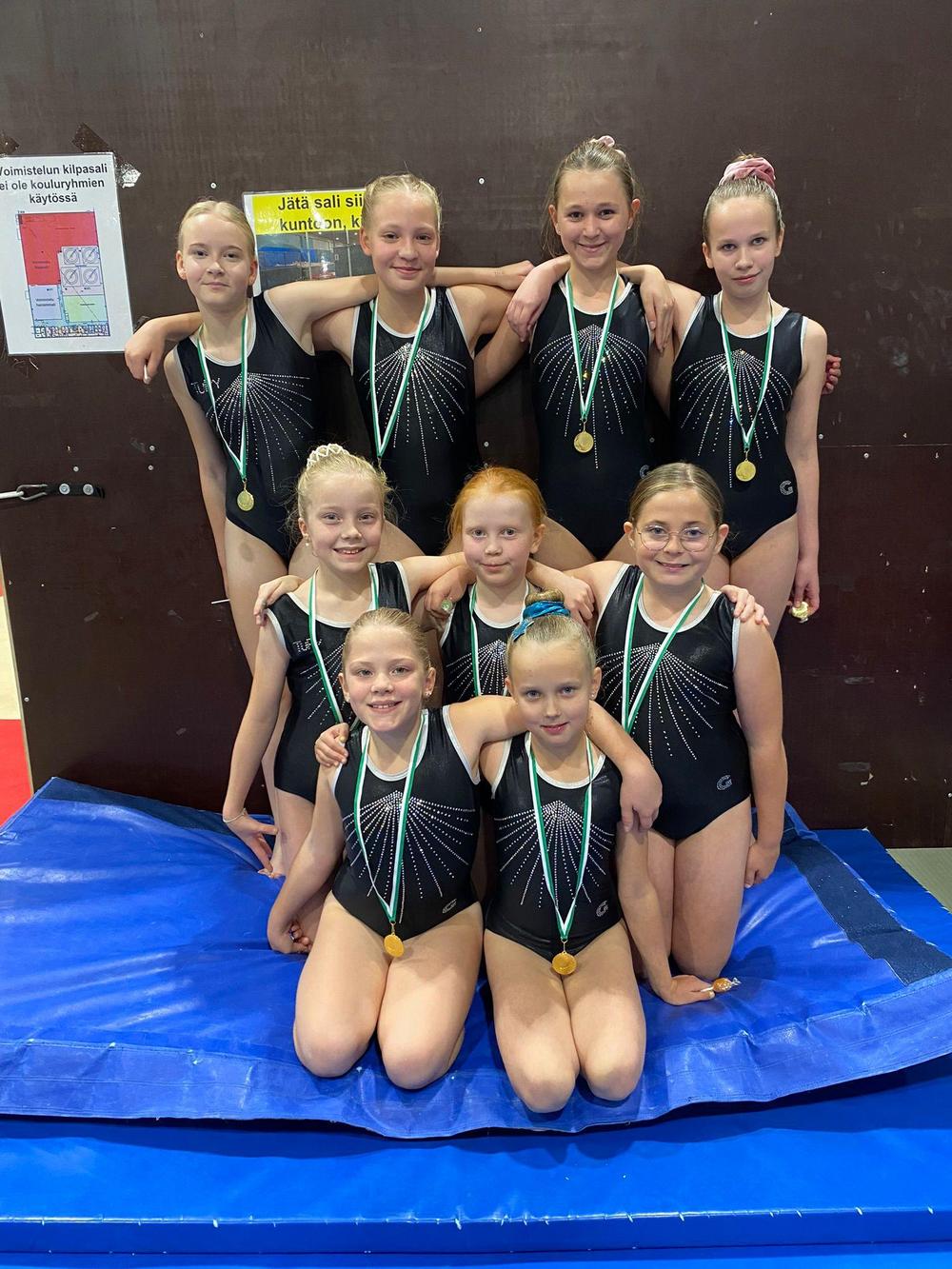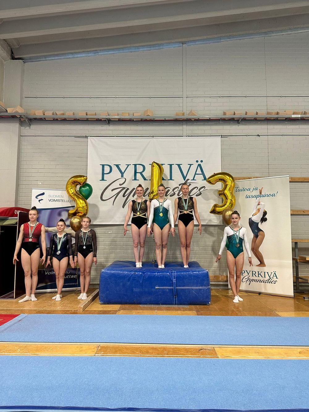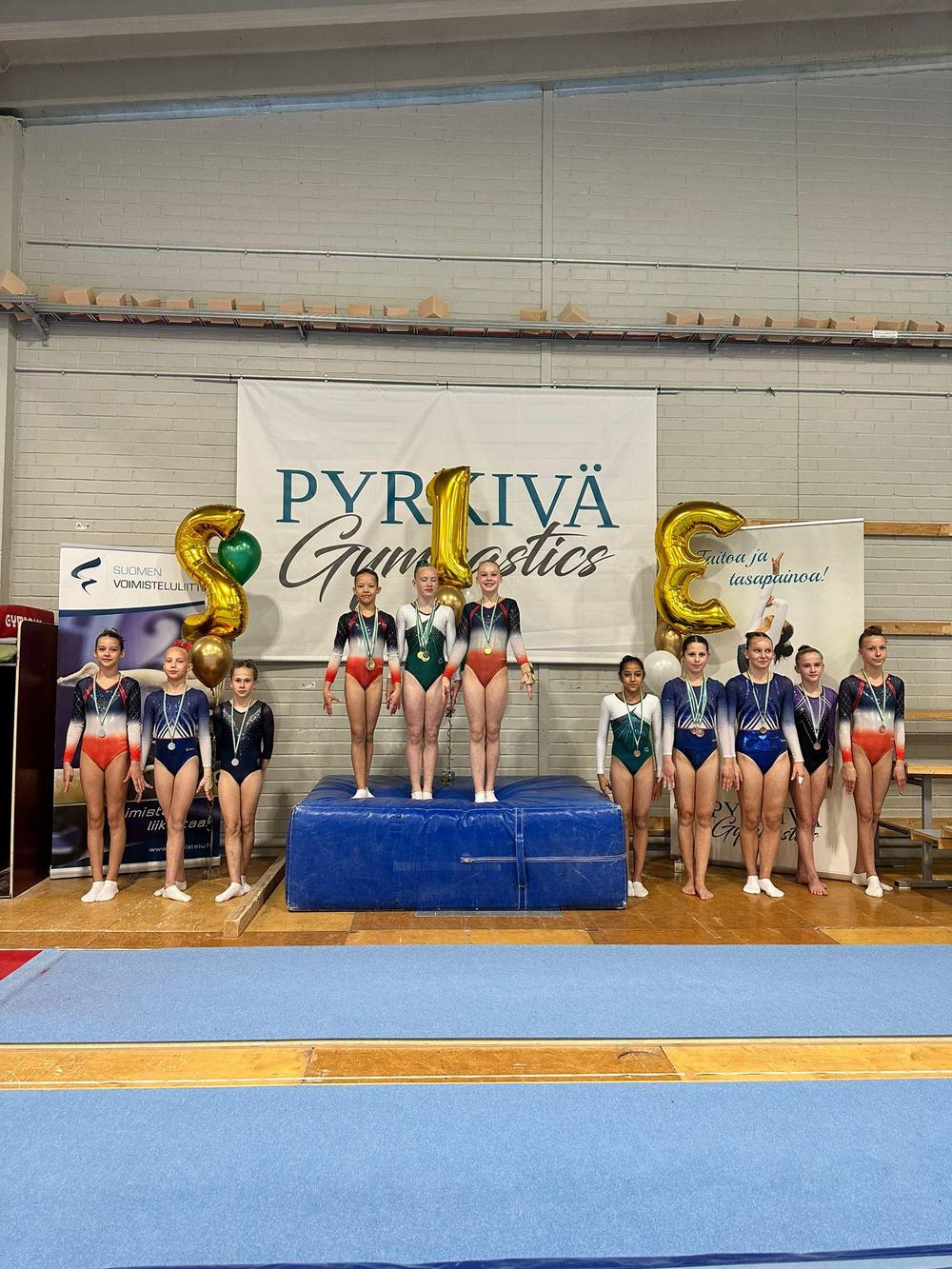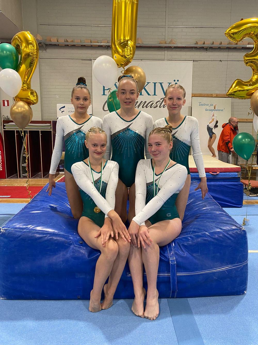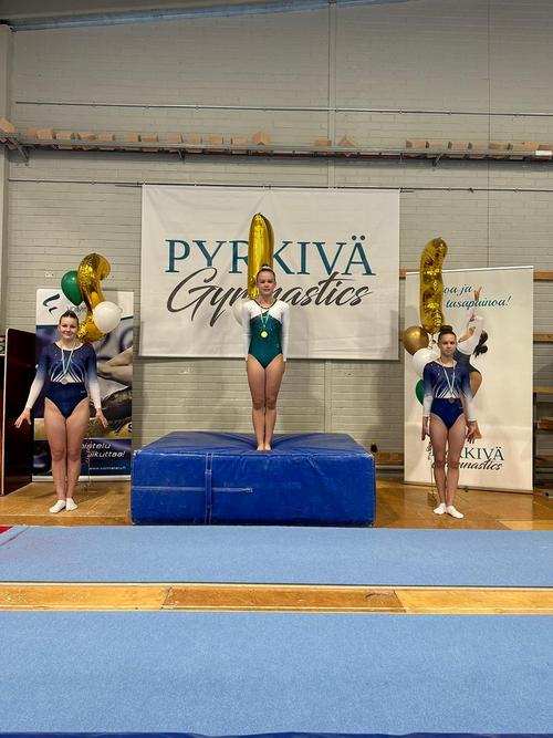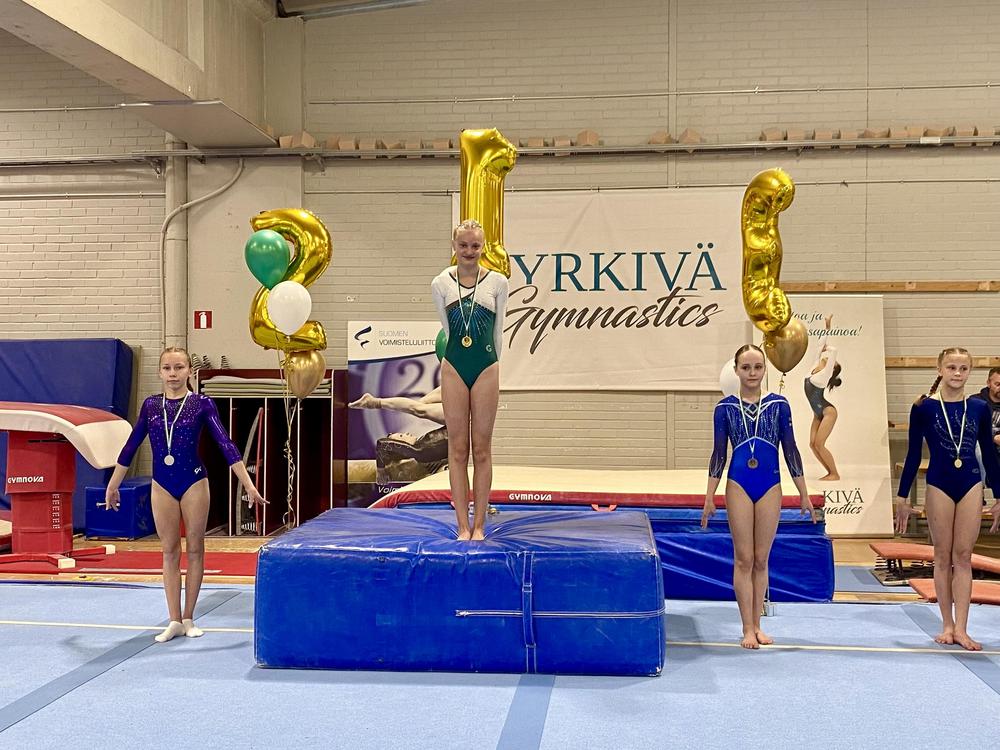 G-luokasta järjestävälle seuralle upeasti kaksi neliottelumitalia; Miisa Kuukasjärvelle kultaa pistein 43,600 ja Silja Korhoselle pronssia pisteillä 42,150. Silja nappasi telinekohtaisissa kilpailuissa hypyn pronssia, ja Miisa tyylikkäästi sekä nojapuiden että puomin kultaa.
