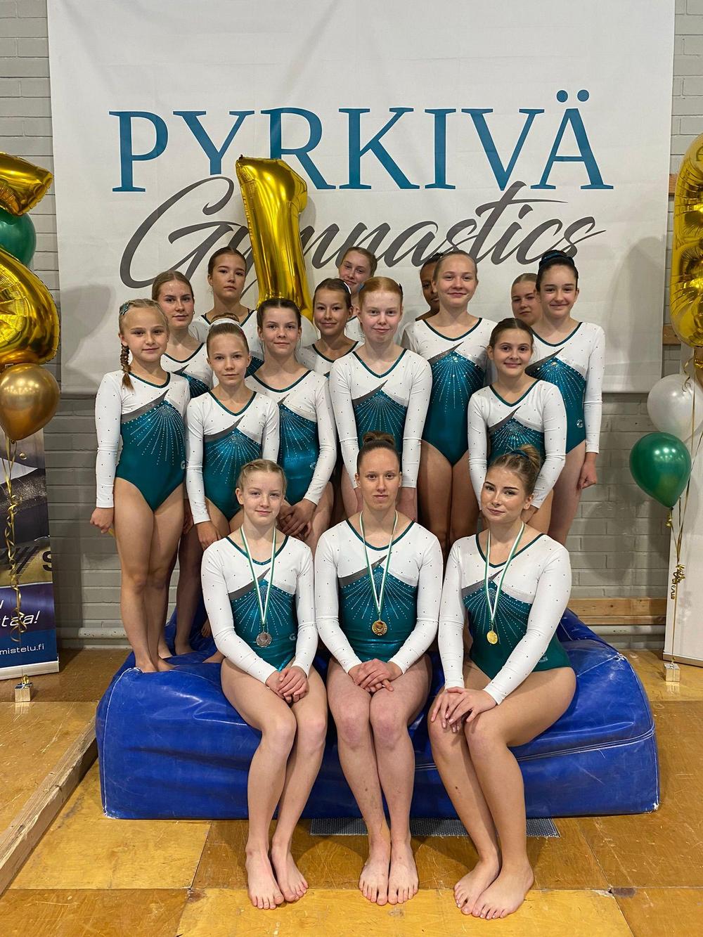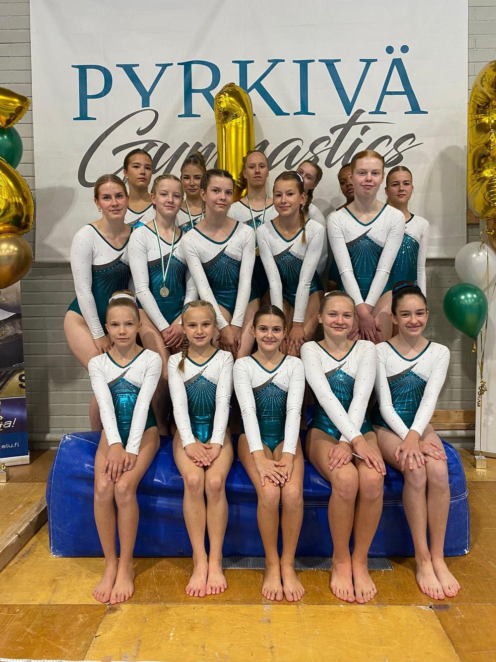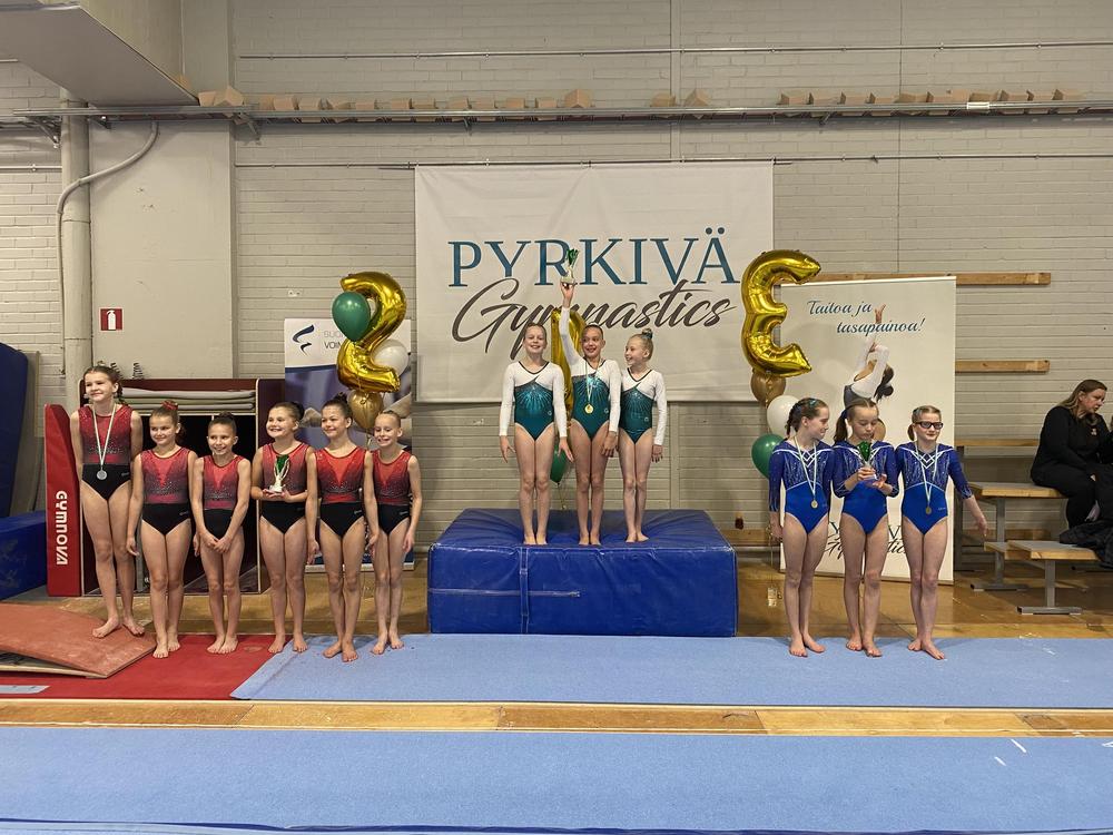 Pyrkivä Gymnastics menestyi myös pakollisten luokkien seurakilpailuissa: B-joukkue saavutti hopeaa, C-joukkue kultaa ja D-joukkue kultaa!