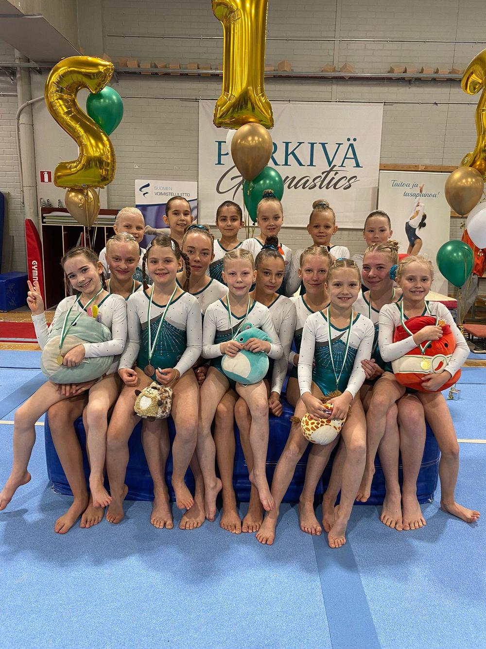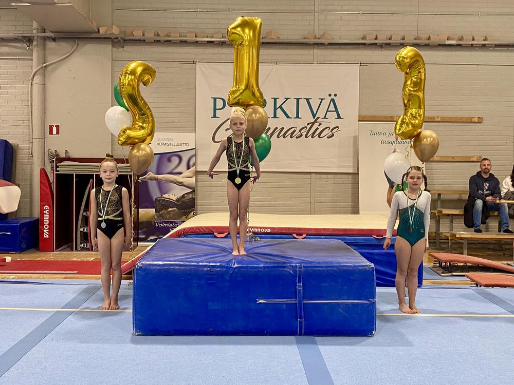 Starassa nähtiin hieno joukko kilpauran alkutaipaleella olevia voimistelijoita. Starassa esiintyivät rohkeat ja taitavat voimistelijamme Auni, Frida, Mette, Saaga, Velma, Venla, Aada, Elise, Inna, Isabella, Minea, Oona, Sofia, Anna, Vivien, Minja, Enni, Iitu, Juli, Hilja, Ronja, Kiira, Senni ja Sofia!
