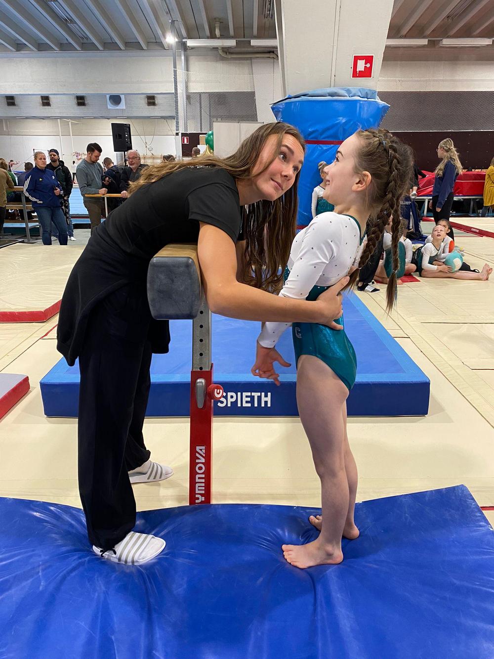 B-luokan nuoremmissa Nella Lehtonen taituroi korkeimman pistekategorian pisteet (VII) ja nappasi upeasti kilpailusta pronssia! Järjestävän seuran hienoa panosta täydensivät 6. sijalla Inna Laaksonen, 7. sijalla Hulda Harju, 9. sijalla Linnea Granath ja 10. sijalla Sofia Joutsa. Lisäksi B-luokan nuorempien kilpailussa loistivat voimistelijamme Emma Vuorsalo, Lumi Haavisto, Emmi Hyttinen, Emma Huldén, Mette Keskitalo ja Mila Küp.