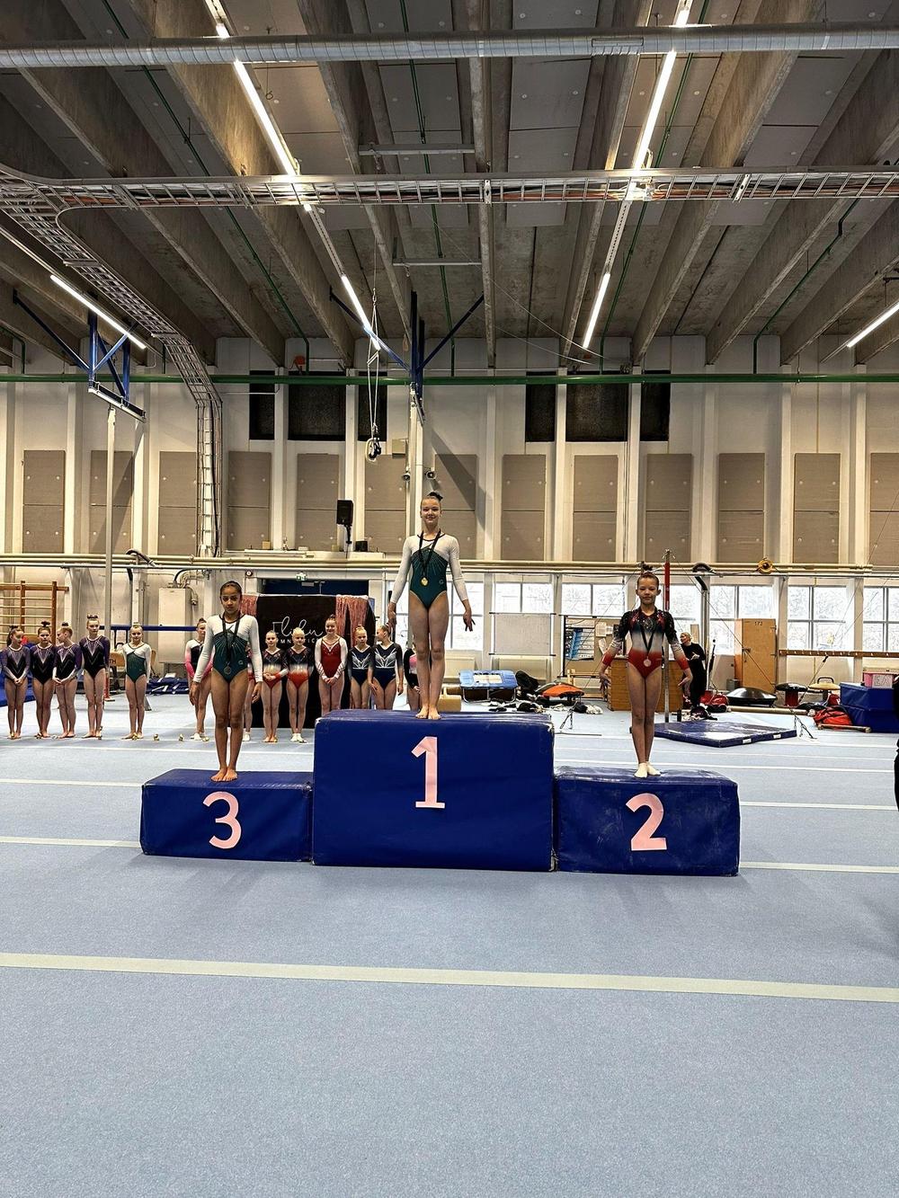 Maajoukkuelinjan 1. luokassa Milla Nurmikko voimisteli huikeilla neliottelupisteillä 33,800 kultaa. Hasania Bakkar puolestaan nappasi itselleen pisteillä 32,500 neliottelun pronssia ja nousupisteet seuraavaan luokkaan! Helka Haanpää voimisteli kilpailussa hienot pisteet 31,800 ja sijoittui upeasti kisan viidenneksi.