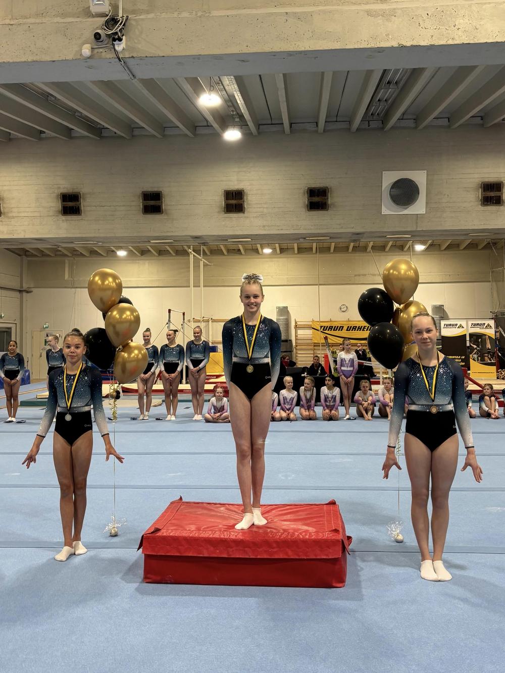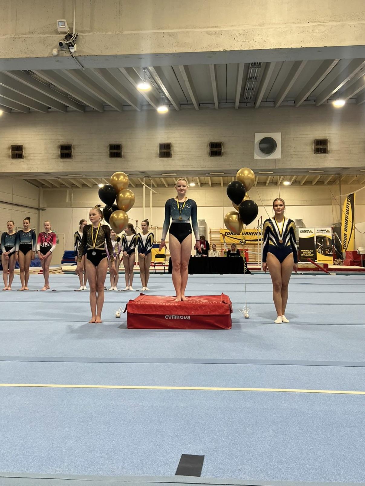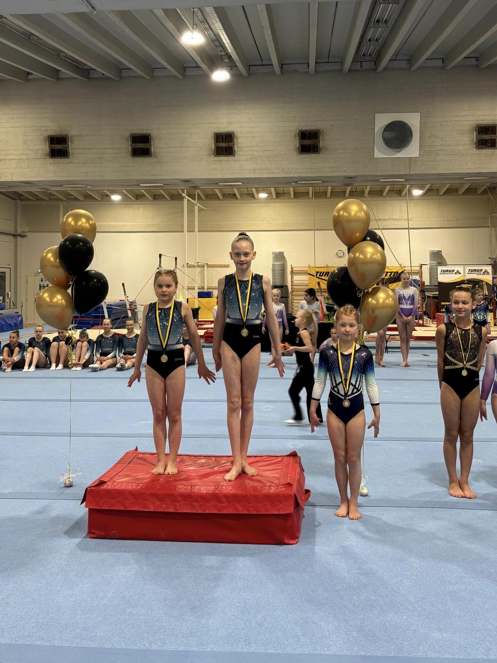 Kilpailuissa nähtiin paljon hienoja onnistumisia ja osalla on takana myös nyt elämänsä ensimmäiset kilpailut! Upeiden suoritusten johdosta, voimistelijamme ylsivät jälleen palkintopallisijoille sekä 10 parhaan joukkoon.