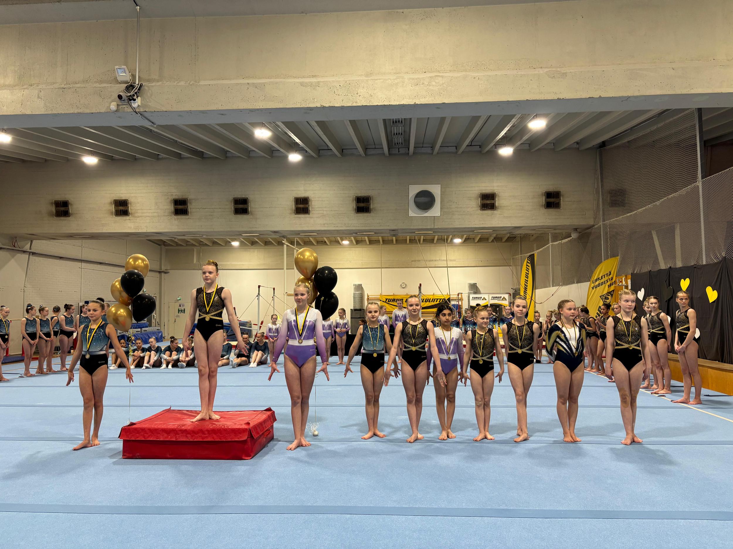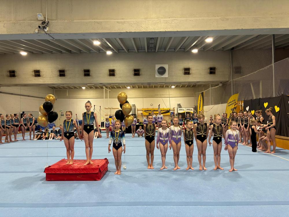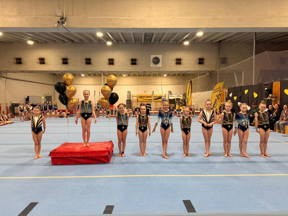 Kilpailuissa nähtiin paljon hienoja onnistumisia ja osalla on takana myös nyt elämänsä ensimmäiset kilpailut! Upeiden suoritusten johdosta, voimistelijamme ylsivät jälleen palkintopallisijoille sekä 10 parhaan joukkoon.