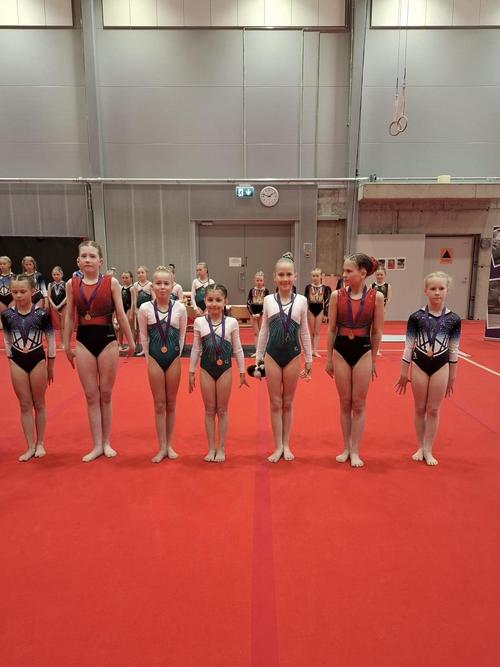 B-luokan nuoremmissa Linnea Granath ja Inna Laaksonen voimistelivat upeat VII kategorian pisteet; Linnea nousi hienosti kovatasoisen kisan sijalle 6 ja Inna sijalle 8. Upeita suorituksia esittivät myös voimistelijamme Sofia Joutsa, Vivien Tuominen, Lumi Haavisto, Hulda Harju, Mette Keskitalo, Emmi Hyttinen, Emma Vuorsalo, Venla Sakko sekä Anna Zoghbi. Myös vanhempien kilpailussa oltiin lähellä kärkeä; Iitu Sainio oli upeasti kisan 6., Mila Küp 7. ja Isla Honkanen 8. Kilpailussa edustivat hienosti myös Vilja Arola, Ronja Bergström, Emma Huldén, Sofia Sakko ja Janni Latokylä.