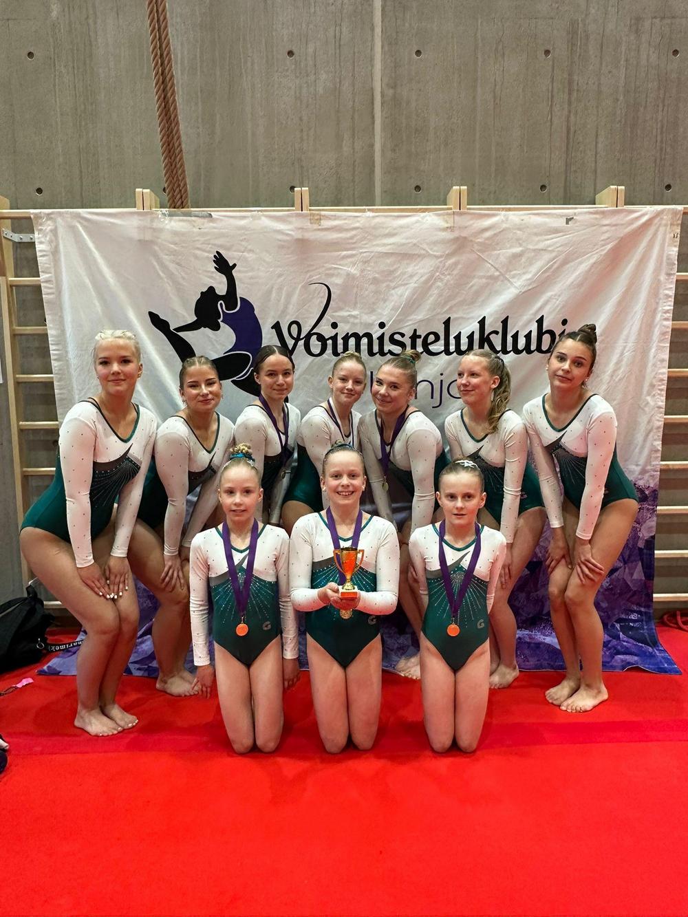 B-luokan nuoremmissa Linnea Granath ja Inna Laaksonen voimistelivat upeat VII kategorian pisteet; Linnea nousi hienosti kovatasoisen kisan sijalle 6 ja Inna sijalle 8. Upeita suorituksia esittivät myös voimistelijamme Sofia Joutsa, Vivien Tuominen, Lumi Haavisto, Hulda Harju, Mette Keskitalo, Emmi Hyttinen, Emma Vuorsalo, Venla Sakko sekä Anna Zoghbi. Myös vanhempien kilpailussa oltiin lähellä kärkeä; Iitu Sainio oli upeasti kisan 6., Mila Küp 7. ja Isla Honkanen 8. Kilpailussa edustivat hienosti myös Vilja Arola, Ronja Bergström, Emma Huldén, Sofia Sakko ja Janni Latokylä.