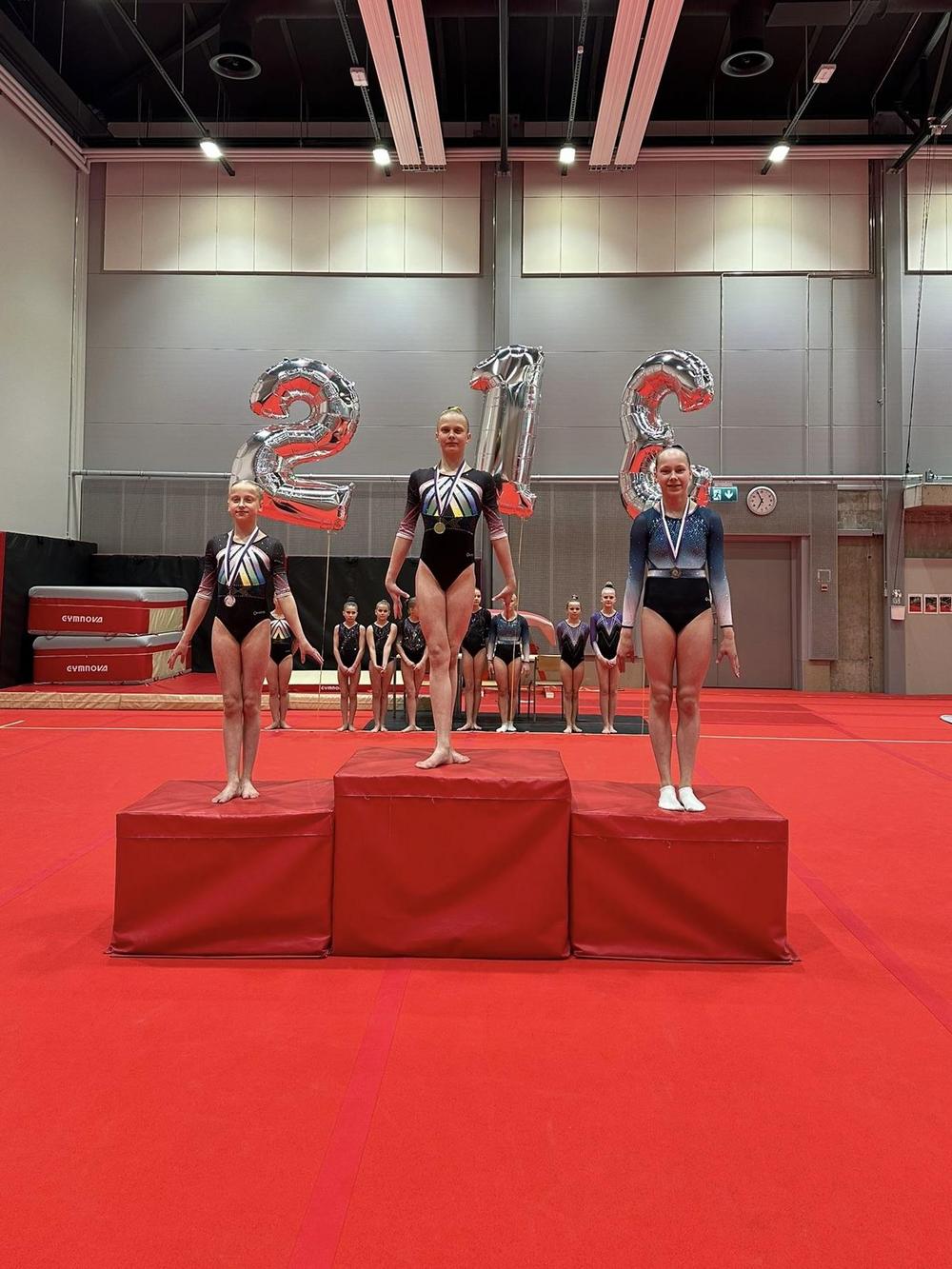 Maajoukkuelinjan 1. luokassa Ilona Olenius voimisteli tyylikkäästi neliottelun pronssille! Myy Virtanen oli hienosti kisan viides. Ilonalle yhteispisteet 31,665 ja Myylle 29,132.