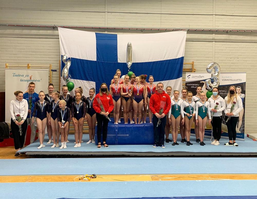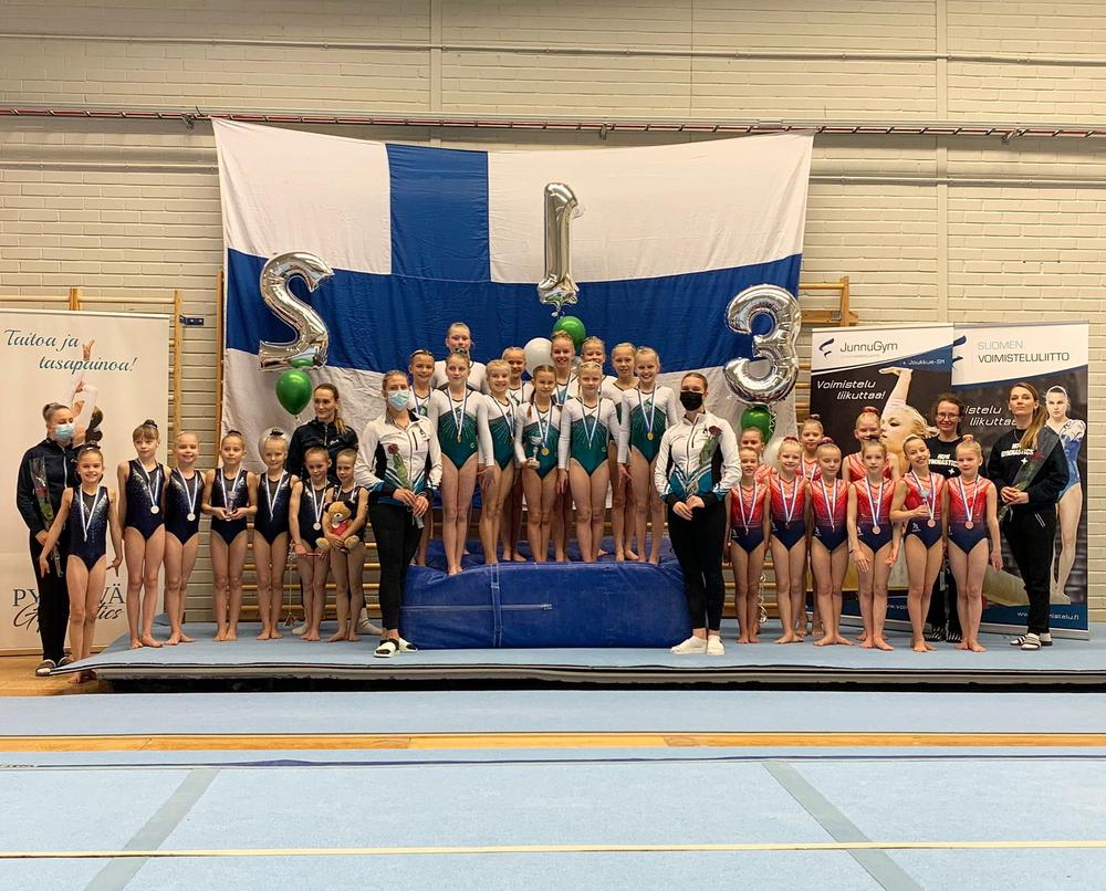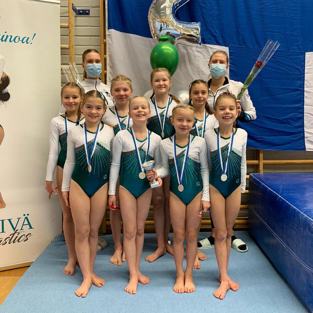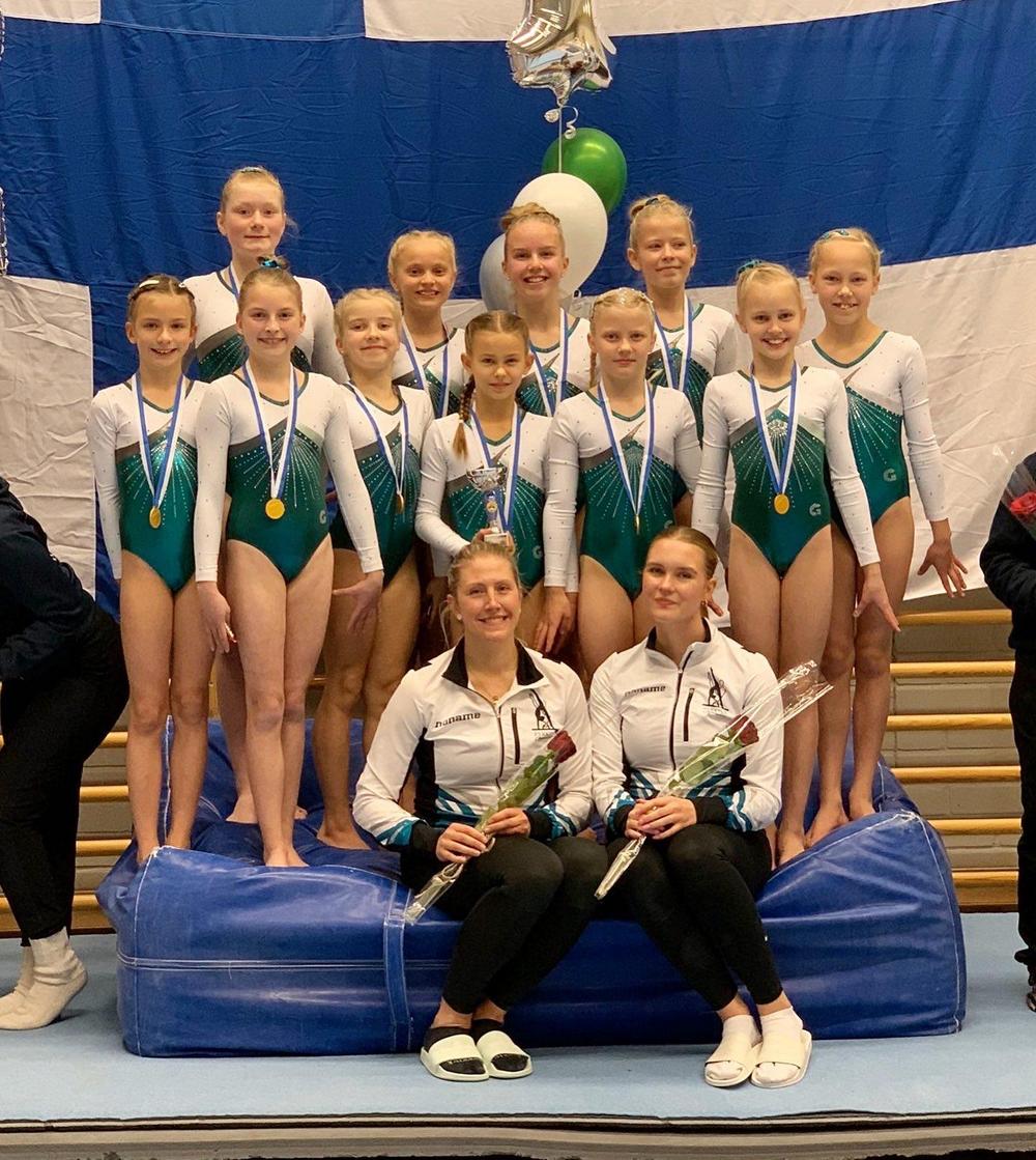 C-JunnuGymin joukkue nousi kilpailun ylivoimaiseen voittoon! Joukkueessa voimistelivat Elena Kero, Helka Haanpää, Helmi Seppä, Ilona Olenius, Ilona Salokannel, Inna Silanterä, Kerttu Lehtonen, Lila Heikkilä, Myy Virtanen, Olivia Uutela ja Sofia Särs.