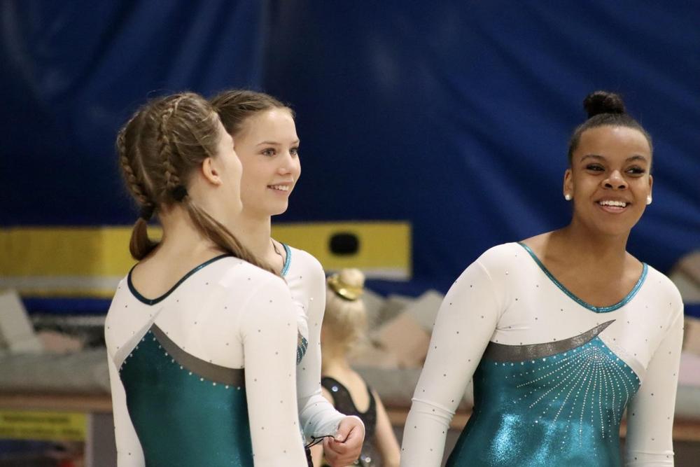 Tyttöjen näyttökilpailussa nähtiin tyylikäs pyrkiväläisedustus. Emma Kervilä, Linda Jewander ja Stiina Nikkola voimistelivat taidokkaasti kovatasoisessa joukossa; Linda nousi hienosti kilpailun sijalle 13 pistein 40,550, ja Stiina nappasi pisteillä 39,150 sijan 16. Emma taituroi tällä kertaa vain nojapuilla ja puomilla.