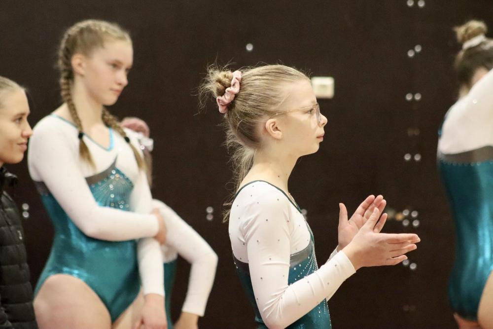 Huikean kovatasoisessa B-luokan nuorempien kilpailussa nähtiin upeita suorituksia ja iso joukko B-luokan ensikertalaisia. Claudia Mattson taituroi hienosti kymmenen parhaan joukkoon sijalle 9! Kilpailussa edustivat tyylikkäästi myös voimistelijamme Mila Meriläinen, Miana Harmanen, Lotta Matomäki, Aida Meriläinen, Nella Lehtonen, Alma Rantala, Iitu Sainio ja Hulda Harju.