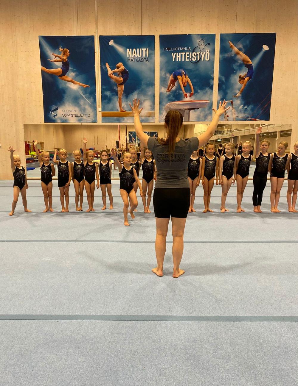 Pyrkivä Gymnasticsin esikilpa-, harrastekilpa-, kilpa- ja maajoukkueryhmien voimistelijat viettivät ikimuistoista kesäleiriä Kuortaneella 27.-30.7.2023. Treenileirillä oli mukana yhteensä huikeat 72 voimistelijaa ja 10 valmentajaa! Moni leiriläisistä oli ehtinyt käymään urheilukeskuksessa jo kymmeniä kertoja, osa pikkujumppareista oli Kuortaneen voimistelusalissa ihan ensimmäistä kertaa.