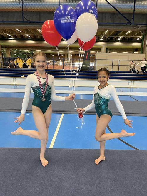 Hasania Bakkar ja Milla Nurmikko kilpailivat molemmat ensimmäistä kertaa kilpalinjan F-luokassa. Nuorempien kilpailussa Milla voimisteli hienosti pisteillä 41,800 neliottelun sijalle 18, ja Hasania pisteillä 41,100 sijalle 22. Milla avasi mitalitilin nappaamalla nojapuukilpailusta upeasti pronssia!