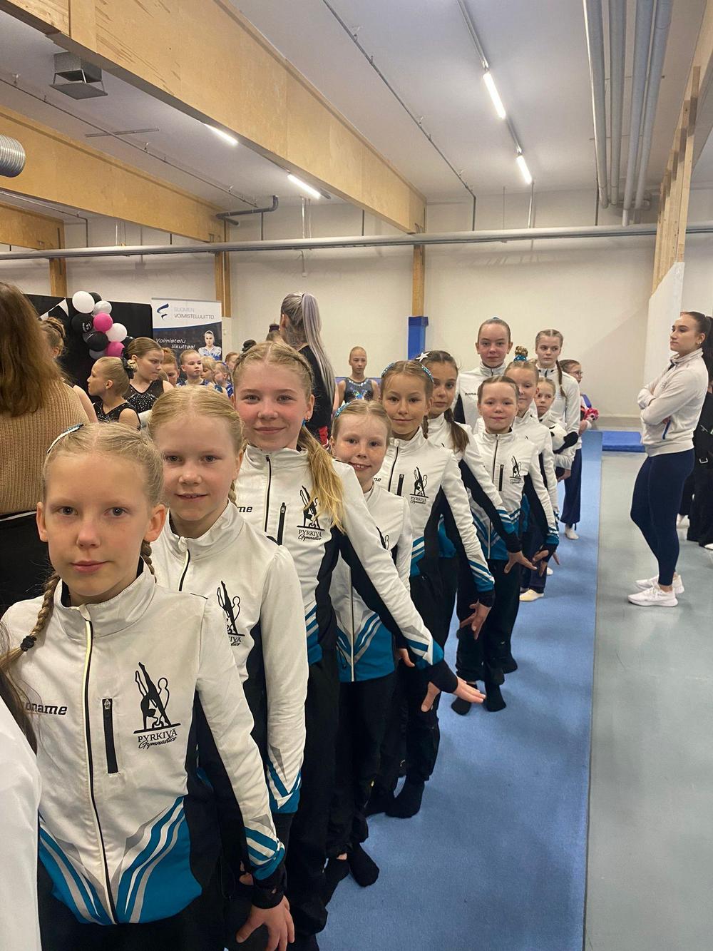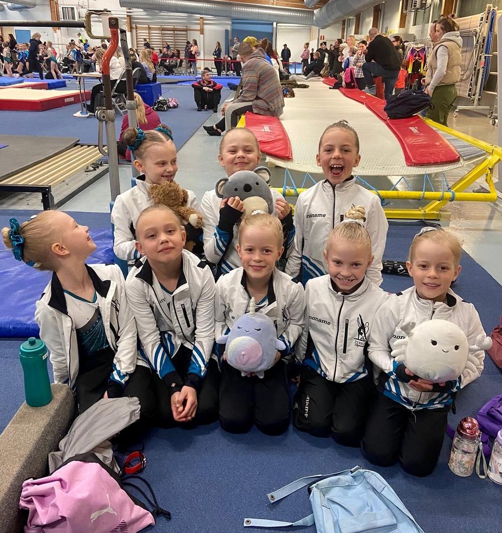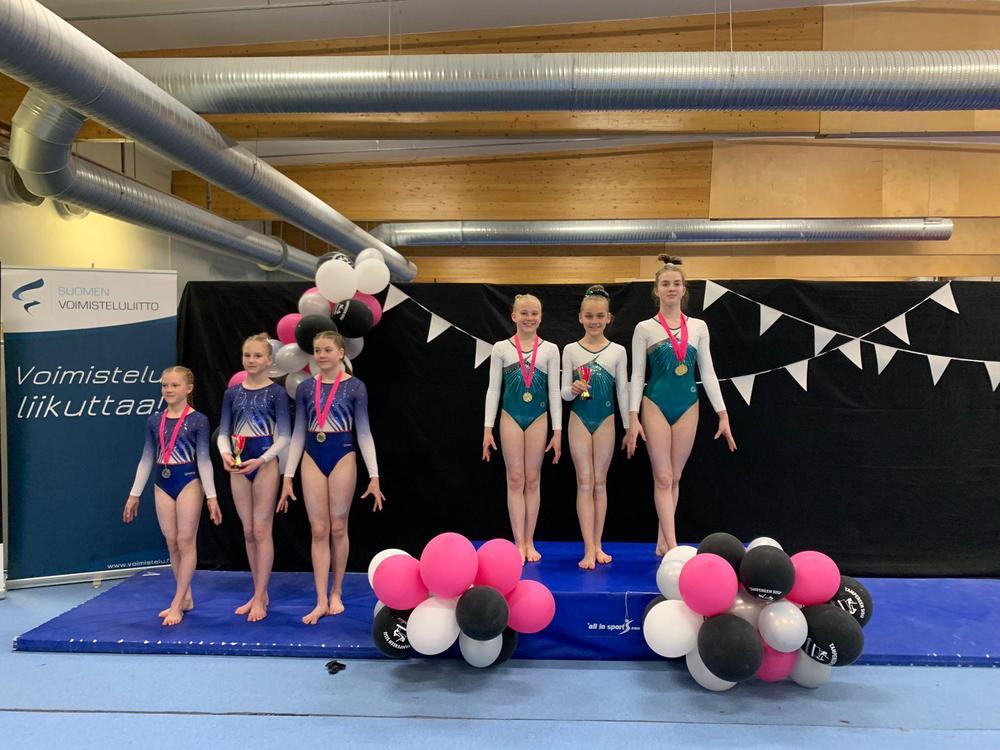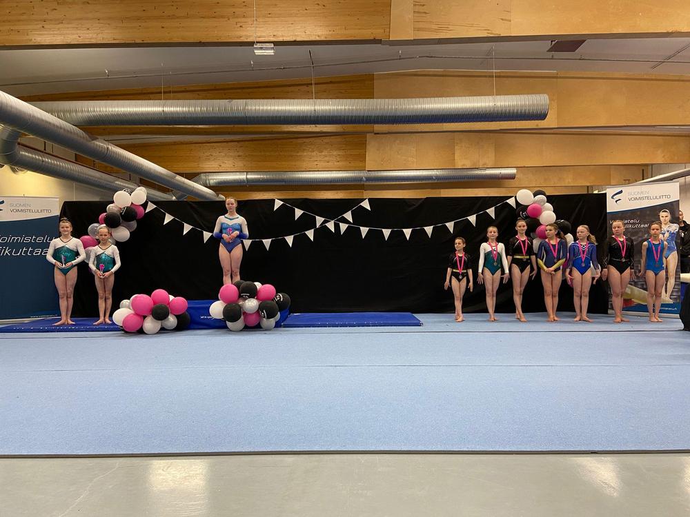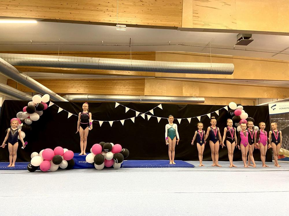 B-luokan joukkueelle kultaa. Joukkueessa voimistelivat Aava, Aida-Elma, Aina, Anni, Eevi, Ellen, Eveliina, Fiona, Lauha, Liina, Lily, Manteli, Minea, Pihla, Pinja, Siiri ja Sofia.