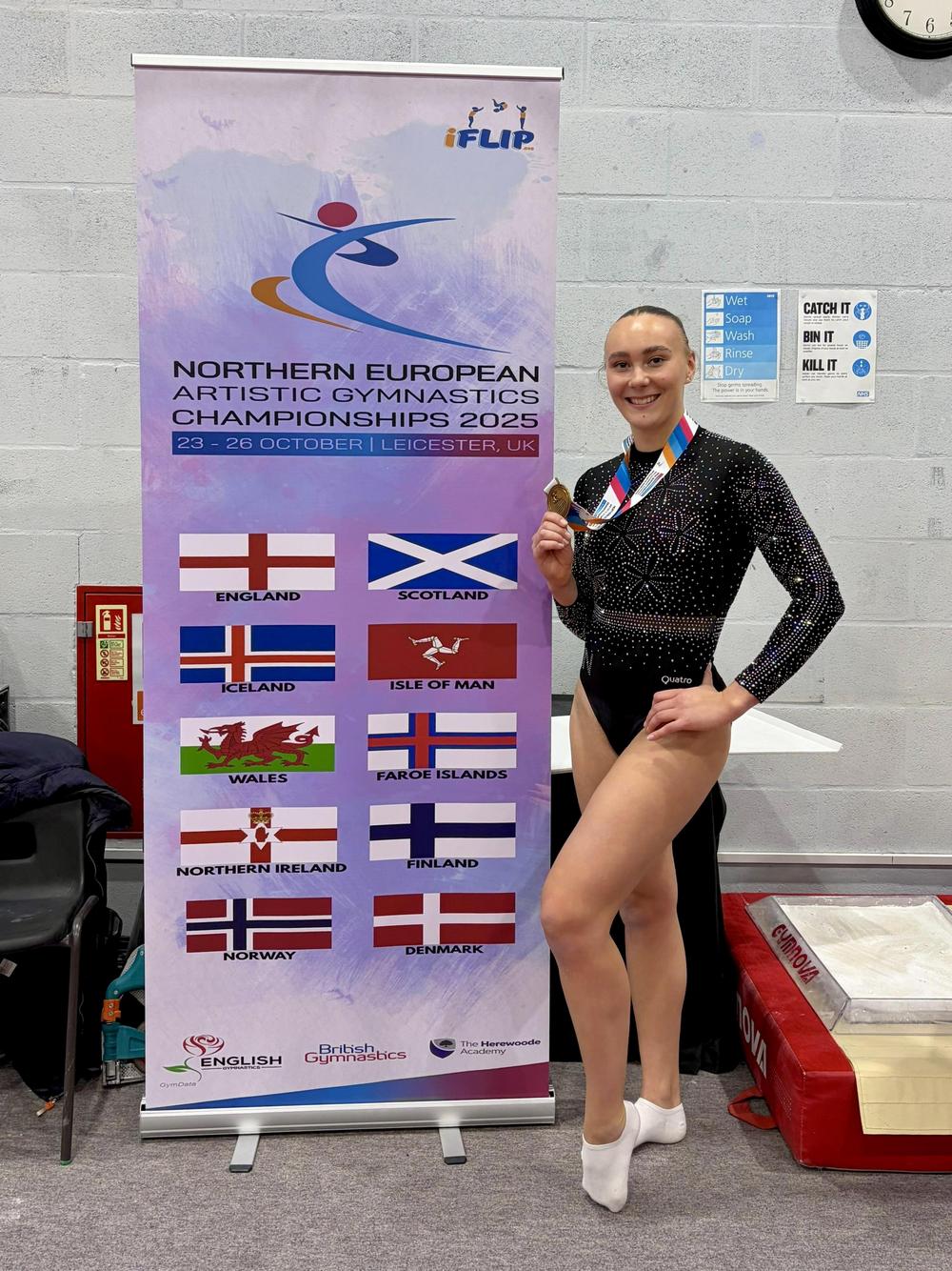 Pyrkivä Gymnasticsiä edustava Sirkku on voimistellut 24.-26.10. Englannissa käydyissä Pohjois-Euroopan mestaruuskilpailuissa nojapuiden kultaa!