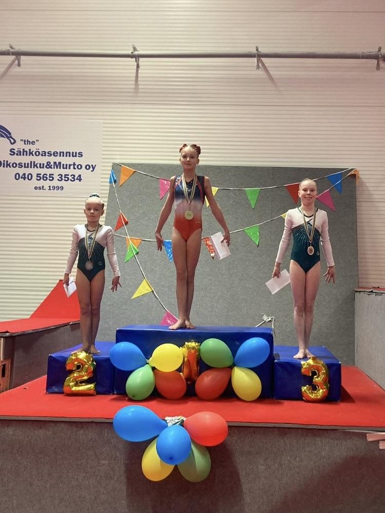 D-luokan nuoremmissa Lilja Moisio taituroi upeasti pronssille! Siiri Kuusela nousi tyylikkäästi kisan sijalle seitsemän. Vanhempien kilpailussa oltiin hienosti kärkikymmenikössä, kun Iida Urponen voimisteli viidenneksi ja Manteli Kuusisto kahdeksanneksi.
